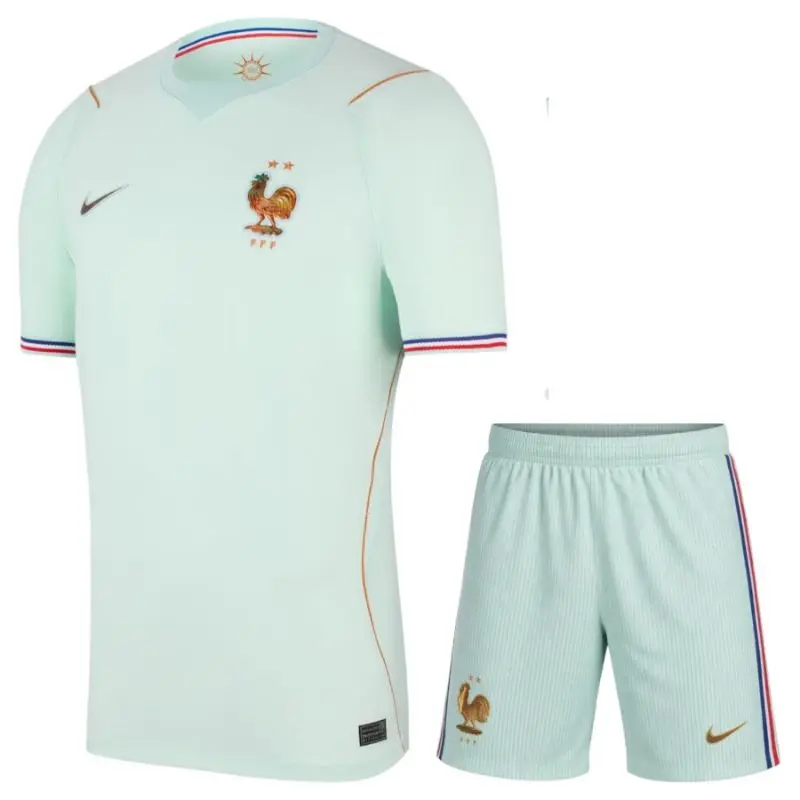 « La liberté, ça se porte aussi en petit format. » Parce que les grands moments se vivent en famille, ce kit enfant offre aux petits supporters la chance de porter l’un des maillots les plus audacieux de l’histoire des Bleus. Le vert-de-gris iconique, inspiré de la patine de la Statue de la Liberté, habille votre enfant des mêmes couleurs que les stars de l’équipe de France pour la Coupe du Monde 2026 aux États-Unis. Les logos cuivrés métallisés sur le maillot brillent à chaque mouvement, tandis que le short complète l’ensemble pour un look extérieur 100% Bleus, aussi collector que flamboyant.